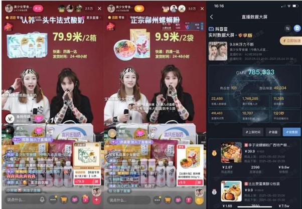 近期做的比较成功的案例就是“美少女零食铺”,可以点歌的直播间,用才华+颜值+优价好物吸引停留达成成交,符合抖音的“人设化商品内容”,同时又不是单纯的枯燥式叫卖,这种直播间抖音没有理由不给推流。