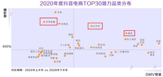 从最新的TOP30潜力品类榜我们也可以看出,艺术收藏、内衣类、童装都会迎来一波新爆发增长,尤其是基于兴趣的艺术收藏书法字画直播间,在“抖艺计划”的加持下肯定会有爆发。