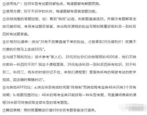 简单说就是:招聘美女老师(一般美就行了),并在某宝批发购买“驾考APP”会员卡密,大概5元一个,但是直播间销售价格在39.9,通过开直播讲解“驾考理论试题”输出有价值的干货内容,吸引目标群体,向该群体销售卡密赚取差价。
