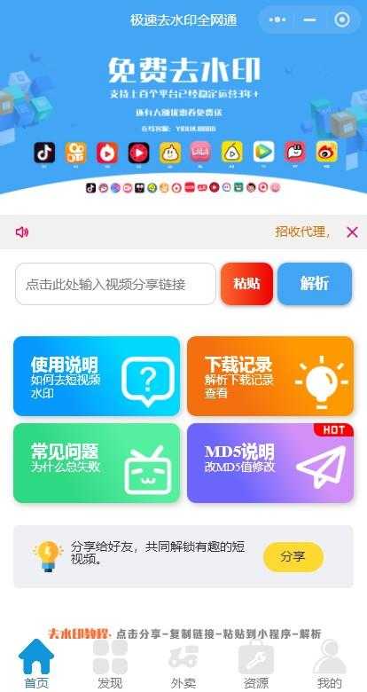 全网去水印独立版带解析接口服务器打包带前端2.3版本(美化UI)