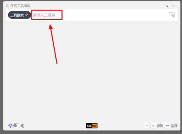 打开网站,就这么一个干干净净、别无他物的小窗口,我们只需要在输入框里输入在线工具的名称,sssbar 就能自动帮我们搜索。