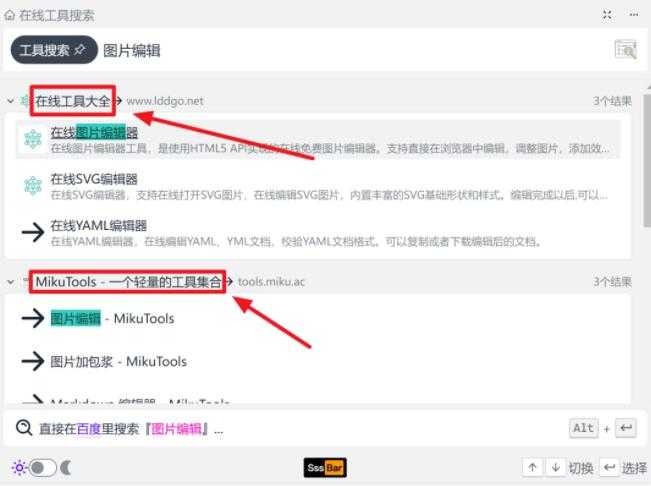 至于这些工具的质量,认真看图的小伙伴肯定发现了,sssbar 的搜索结果,就是对前面提到的聚合工具箱来了个二次筛选。