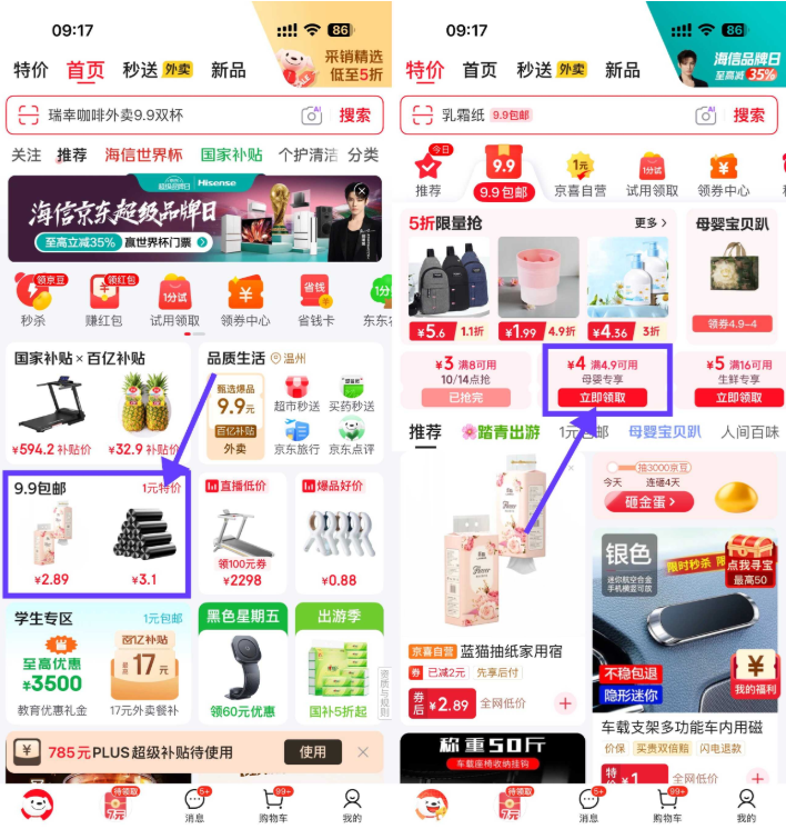 - 03-11 京东APP-点顶部“特价”领3.9-3亓券