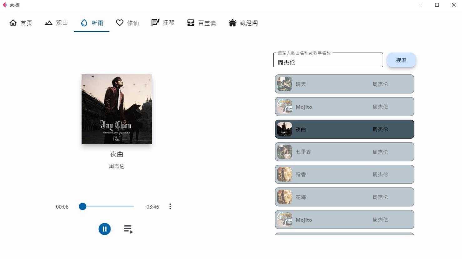 太极是一款基于flet的一款Windows桌面应用,实现了爬取图片、音乐、小说、磁力链接的功能,可谓是多功能娱乐软件,界面美观、简洁、实用,是你娱乐休闲不可或缺的软件。
