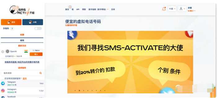 需要用邮箱注册一个 sms-activate 平台的帐号。