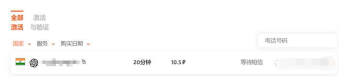 这里我选择了印度。然后,可以在激活区看到待使用的临时号码,如下图:
