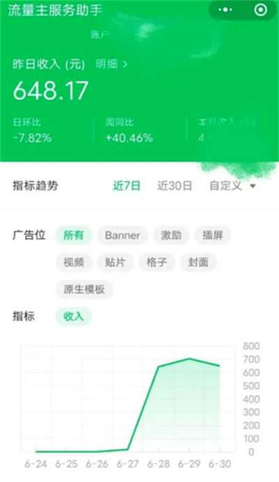 有了这些广告形式,我们可以自主的在小程序中添加这些广告,从而给我们带来被动收入。下图为我其中一个小程序去年的收入,从流量主数据助手中可以清晰的看到每个广告位为自己带来了多少收益。