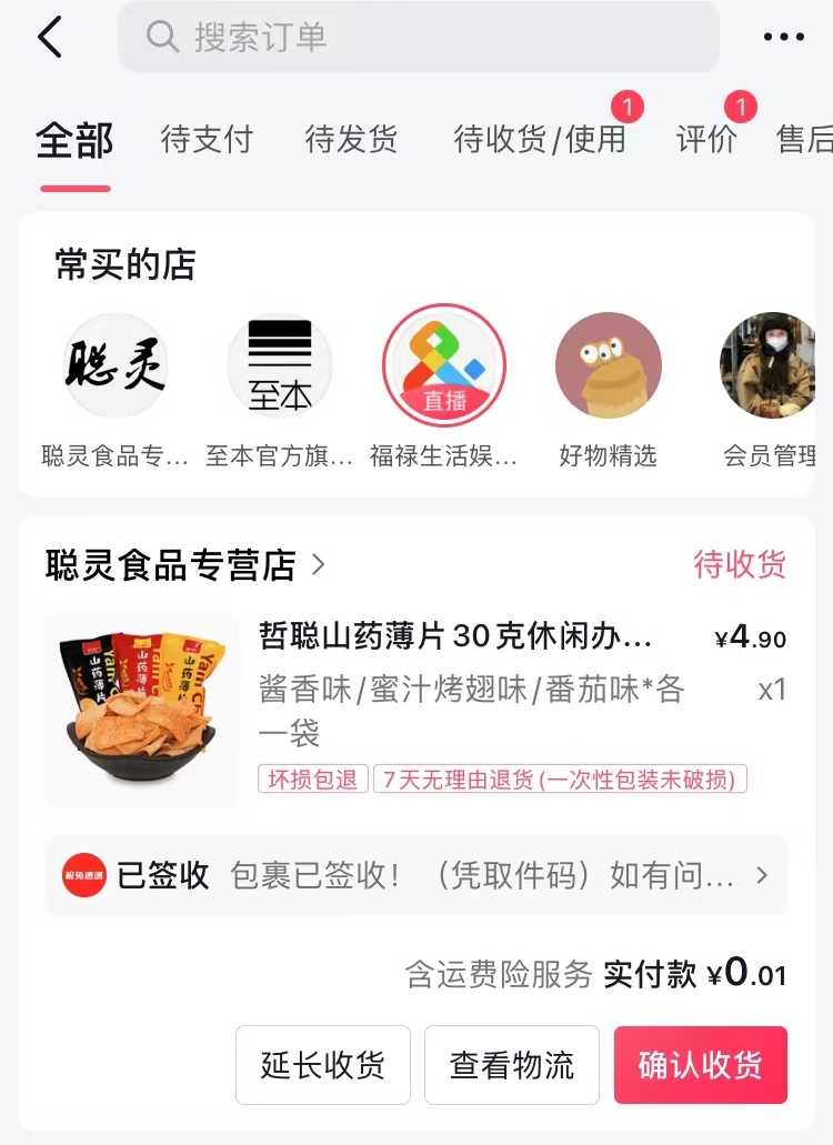抖音0元购零食数据线等产品