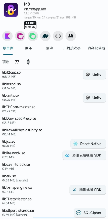 这个感觉和内置虚幻引擎的超级QQ秀差不多似的 这个邀请好友也很方便,直接点击添加好友就能邀请你的QQ好友,直接给你QQ好友发个卡片消息(前提登录的 时候授权查看你的QQ好友信息) 以下是部分原生库,有大佬说下都是什么吗?(此图片来自网友)