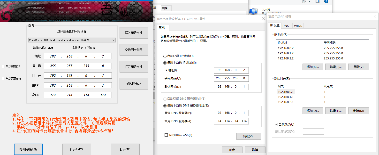 192.168.0.2 255.255.255.0 192.168.0.1 192.168.0.1 114.114.114.114
