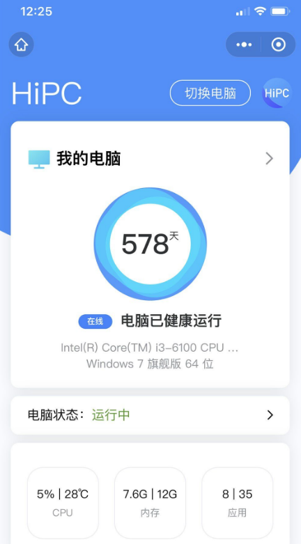 HiPC是一款用手机(微信)控制电脑的小程序,支持免安装APP集中监视电脑,远程开机、远程关机重启、远程打开软件、文件浏览、定时开关机、远程桌面截屏等。