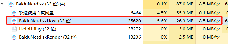6.这时你再去任务管理器中查看百度网盘的网速,达到8.5MB/S,直接能跑满宽带!