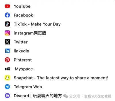 2、社媒系,FACEBOOK,X,YOUTUBE、TIKTOK等等。