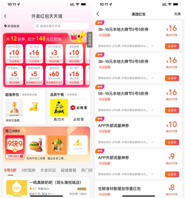 - 01-24 美团搜索【50555】半价外卖券