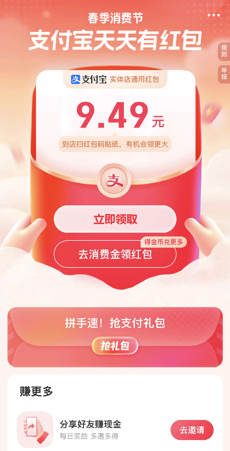 不领白不领!支付宝春季消费节又在撒红包啦!自动领红包源码,你值得拥有!